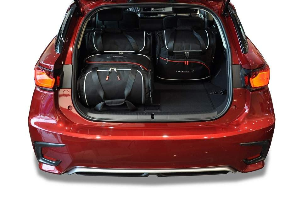 Organizirajte prtljažnik svog Lexusa CT (2010-2021) uz set od 4 torbe izrađenih po mjeri. Torbe savršeno prate oblik prtljažnika i omogućuju maksimalnu iskoristivost prostora. Izrađene su od kvalitetnih, izdržljivih materijala koji jamče dugotrajnost, a njihov elegantan dizajn usklađuje se s premium karakterom Lexusa. Idealan izbor za uredna i praktična putovanja, bilo poslovna ili obiteljska.